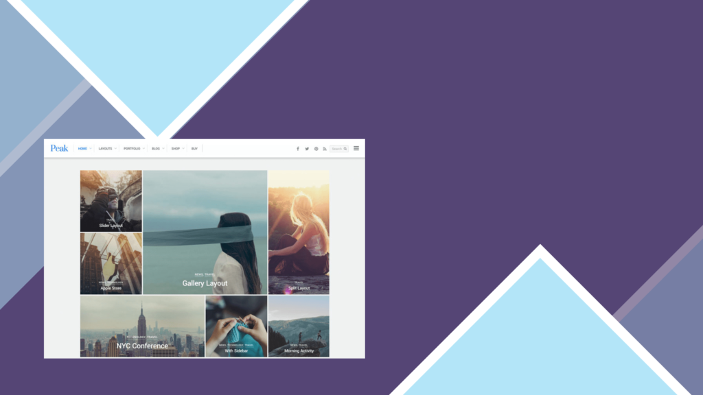 Peak is a modern grid based WordPress theme, boasting a masonry tiles layout that can adapt to any screen size or device thrown at it. The tiles layout is auto populated and aligned perfectly in a grid, but you can set your own custom tile size. Equipped with the optional mega menu, various post layouts, slide-out widgets, portfolio, and WooCommerce support, Peak is an excellent multi-purpose theme for blogs, portfolios, magazines, and ecommerce sites.